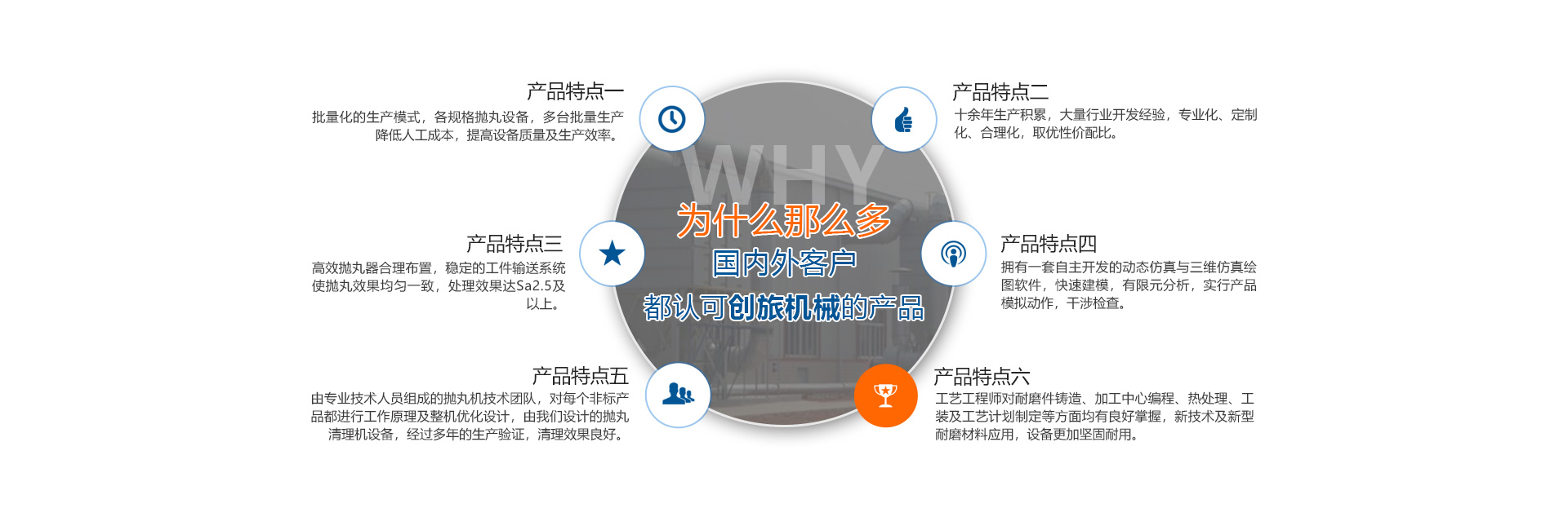 合肥市創(chuàng)旅機(jī)械有限公司是專業(yè)的噴砂房、拋丸機(jī)生產(chǎn)廠家,生產(chǎn)不同型號(hào)不同價(jià)格的江蘇拋丸機(jī)、江蘇 噴砂房、除銹機(jī)、拋丸清理機(jī)械、自動(dòng)噴砂機(jī)械、通風(fēng)除塵設(shè)備、砂處理成套設(shè)備、鋼丸及各種耐磨合金 件的大型專業(yè)化制造企業(yè)。 我公司愿與各行各業(yè)的朋友交往與合作,使您的產(chǎn)品更光彩! 產(chǎn)品有:鋼板預(yù)處理生產(chǎn)線,噴砂房,噴砂機(jī)械,噴砂設(shè)備,拋丸機(jī),拋丸清理機(jī),混砂機(jī),噴丸機(jī) ,拋 噴丸機(jī),履帶式拋丸清理機(jī),鋼板除銹機(jī),鋼材除銹機(jī),板...